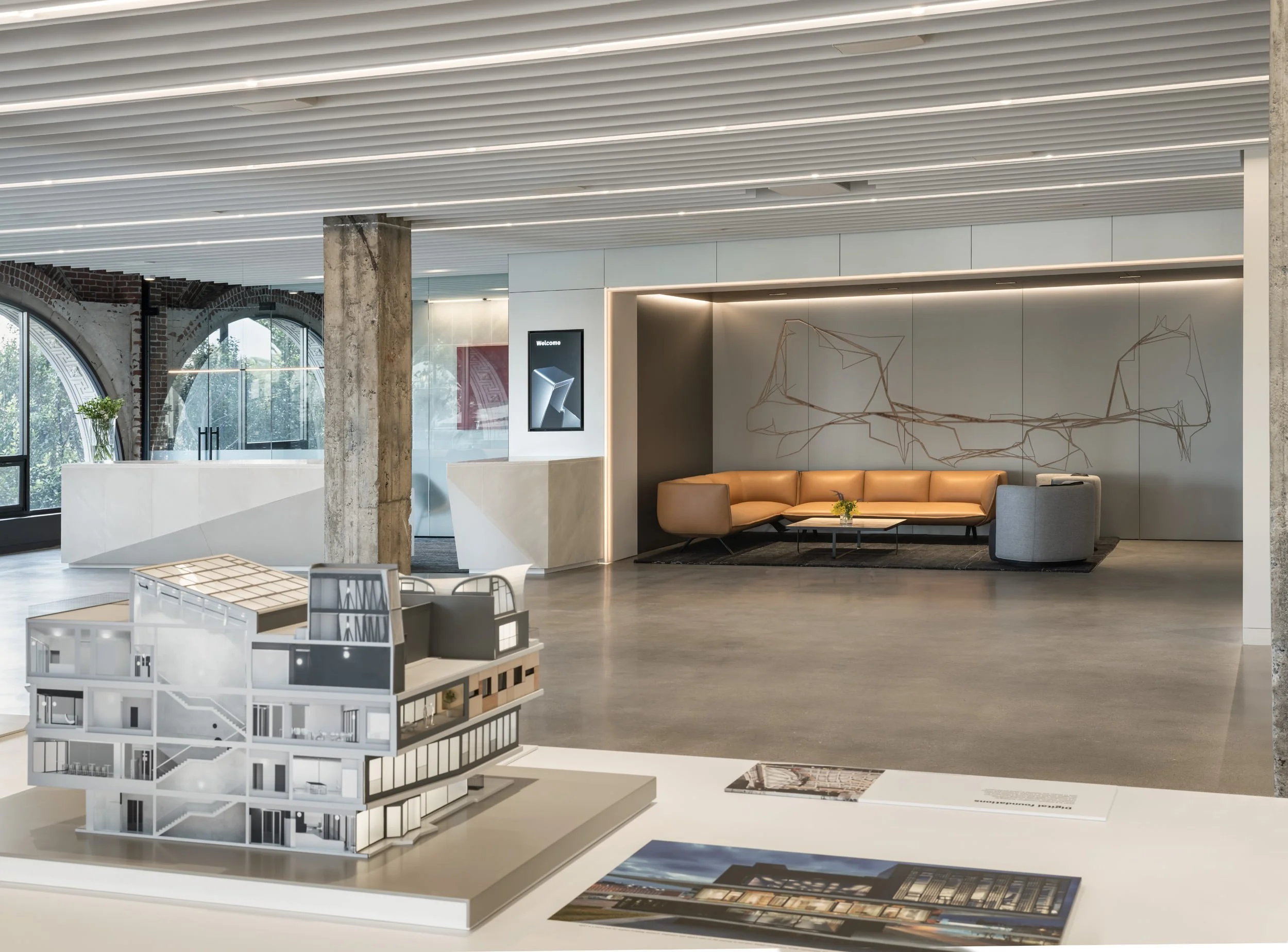 The Gallery’s role is to express Autodesk’s vision for the possibilities of the future. The design challenge for this project was to resolve its many contradictions. The space needs to serve three distinct programs but feel like a single place. Be both flexible and specific, bright and warm, expansive and intimate. Embody futurism but also feel timeless. Like any vision of the future the exhibits will be constantly changing and shifting as time goes on. The design goal was to ground that conversation both in the context of the historic building originally built in 1916 and a timeless, nature-inspired modernism.